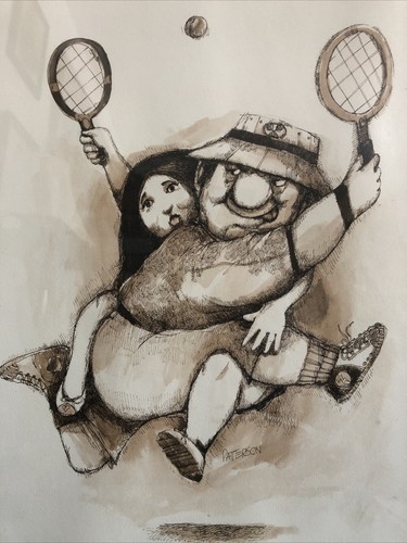 Vintage 1970 S Gary Patterson Cartoon Art Print 17 X 21 Framed Mixed Doubles Ebay