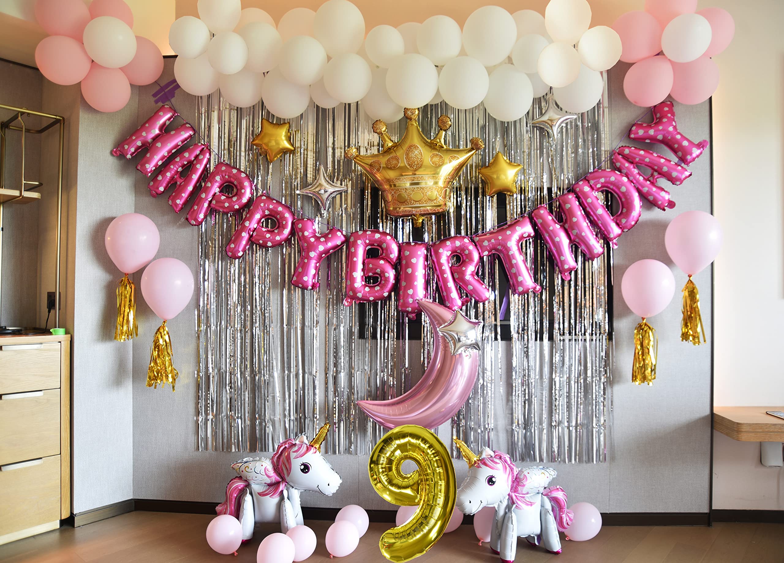 Amazon Com Simon Isaac 9th Birthday Decorations For Girls Pink Unicorn Theme Princess Girl Birthday Party Decorations 9th Birthday Toys Games